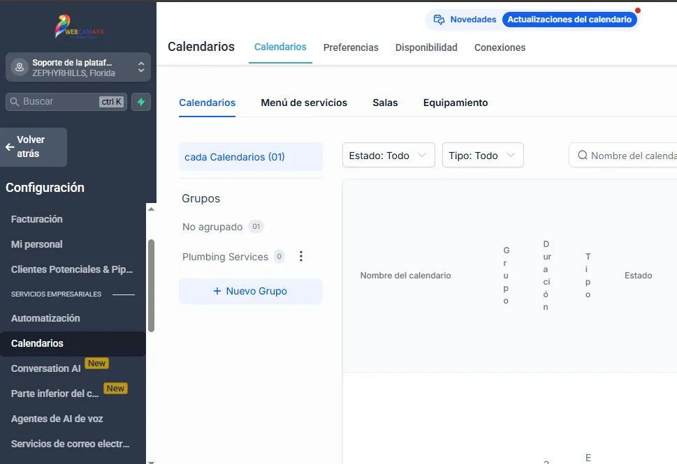 Una vez conectado, vuelve al menú Configuración → Calendarios.